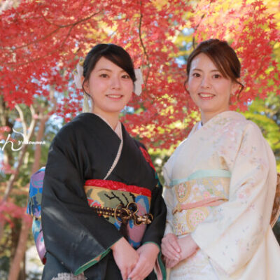 自分らしくドレスアップして心に残る想い出を… しあわせがあふれるルクールの振袖で。 舞んは振袖美人を応援します 最高の秋晴れの中、素敵なお二人の撮影をお手伝いさせていただきました。 お母様と並んでの撮影は、少し照れくさく