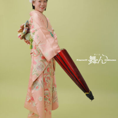 自分らしくドレスアップして心に残る想い出を… しあわせがあふれるルクールの振袖で 舞んは振袖美人を応援します 淡いピンク地に四季折々の花々が描かれた一着。 お客様の柔らかな雰囲気に寄り添う、可憐な振袖姿がとても素敵でした