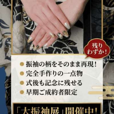 自分らしくドレスアップして心に残る想い出を… 舞んは振袖美人を応援します 成人式の写真、実は「手元」がすごく写るんです。 舞んでは、あなたの選んだ振袖に合わせたオリジナルネイルをオーダーいただけます。 PO