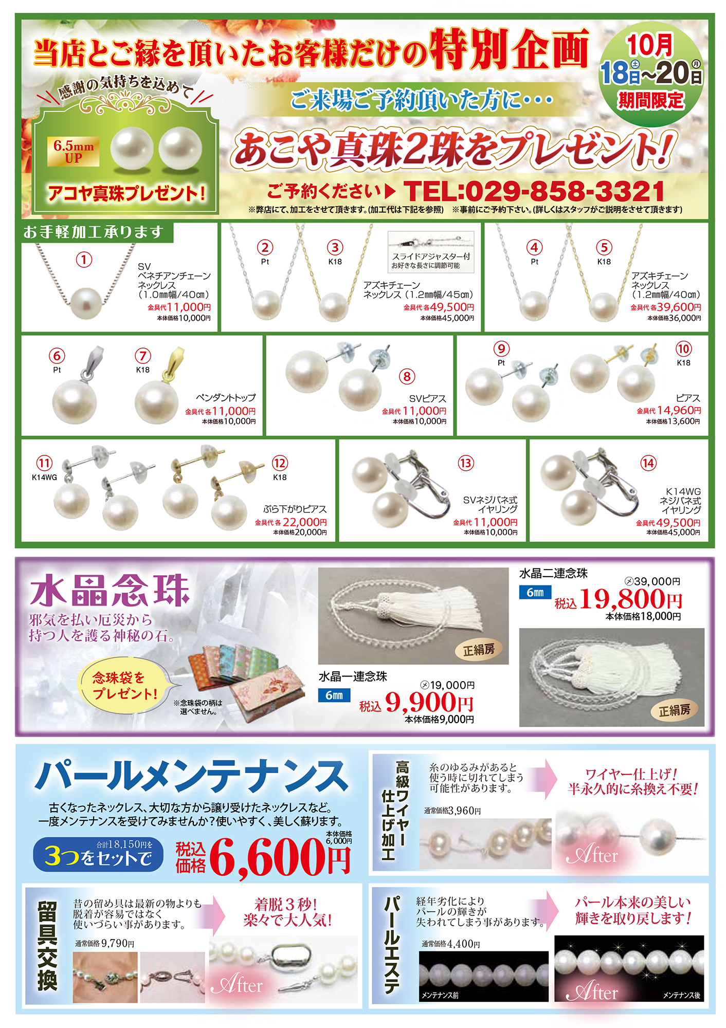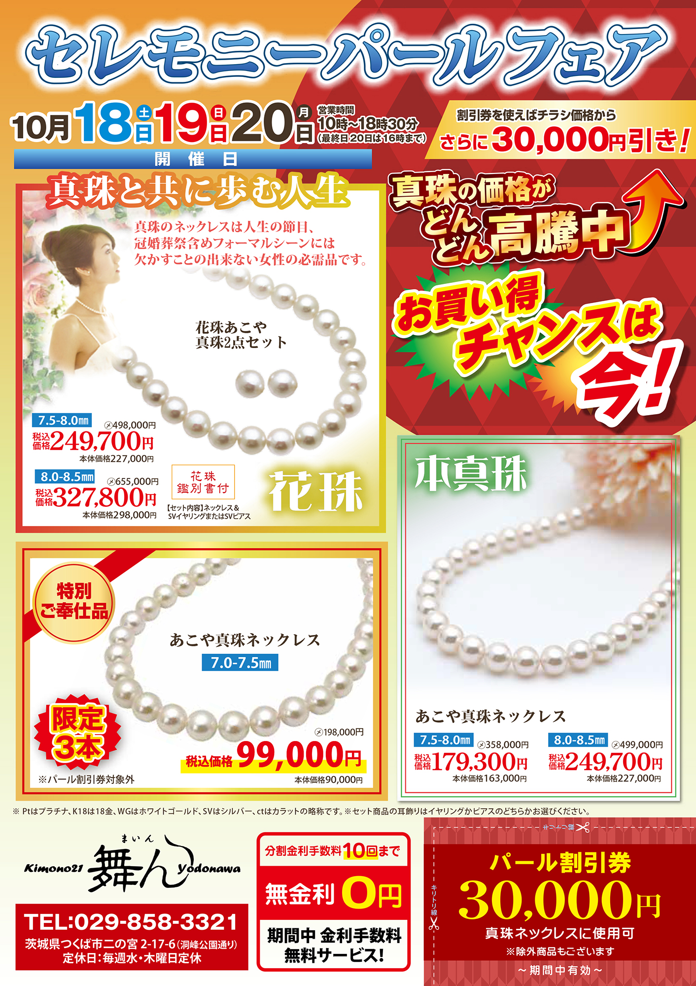 大変お待たせいたしました! 明日10月18日(土)から20日(月)までの3日間限定で、「セレモニーパールフェア」を開催いたします!