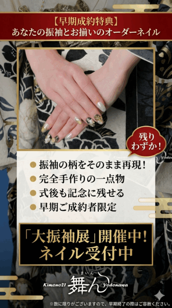 舞んでは、あなたの選んだ振袖に合わせたオリジナルネイルをオーダーいただけます。